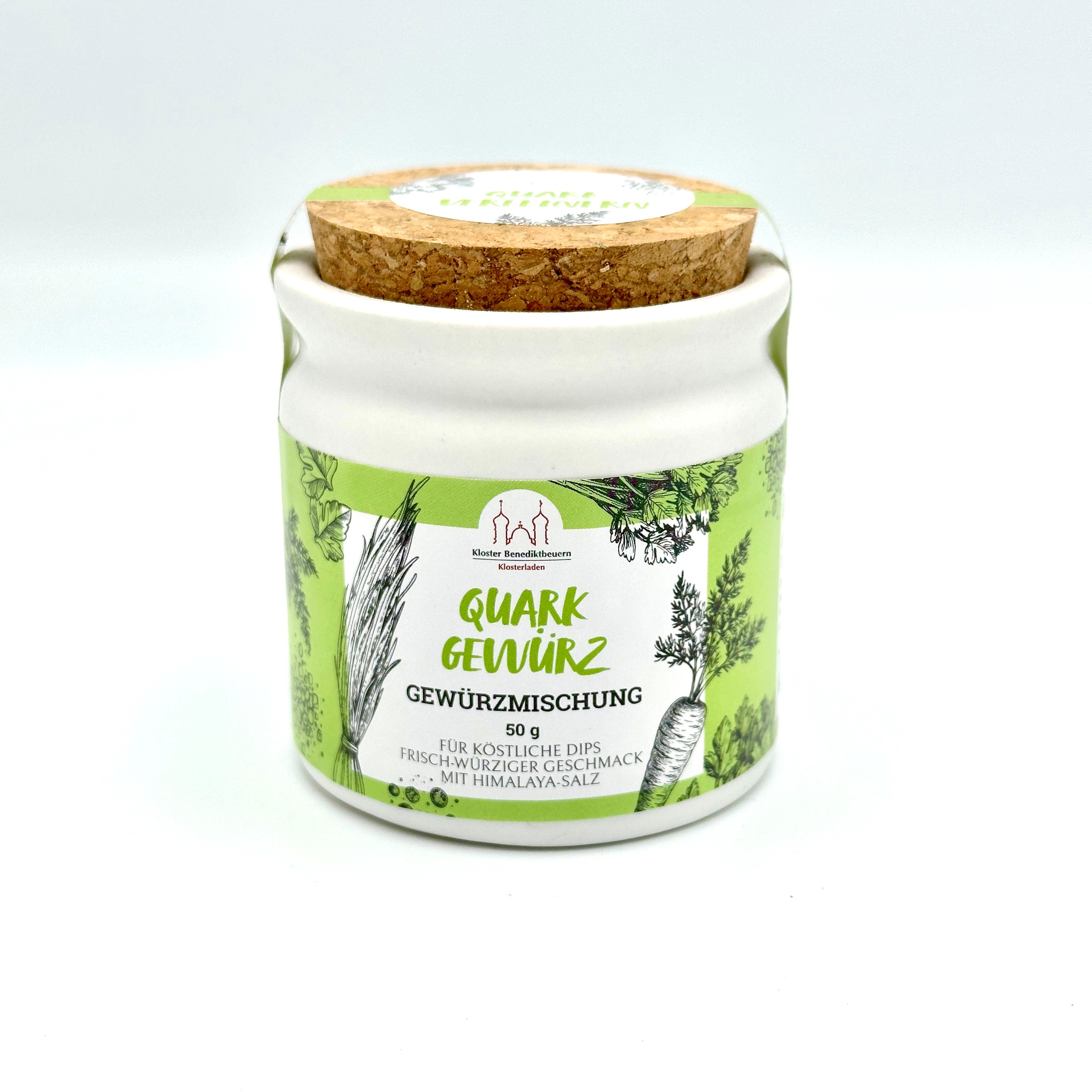 Mit dieser fix und fertigen Gewürzmischung zaubern Sie im Nu ihren Kräuterquark selbst. Das geht ganz einfach und ist so köstlich. Dabei sind Ihrem Ideenreichtum und Ihrem Kühlschrankvorrat (fast) keine Grenzen gesetzt. Das Quarkgewürz gibt Ihren Speisen eine frische Kräuternote. Es eignet sich für Dips, Aufstriche und Dressings auf Quark-, Frischkäse-, Joghurt- oder Sauerrahmbasis. Falls Ihnen die Quarkmasse zu fest erscheinen sollte, rühren Sie ein paar Esslöffel Milch hinein. Ein Dip mit Quarkgewürz schmeckt nicht nur zu gebratenen, gekochten oder gebackenen Kartoffeln, sondern auch zu Steaks, Salaten, Rohkoststreifen, Süßkartoffeln, warmem Kräuterbaguette vom Grill oder Couscous-Bällchen. Für die Zubereitung von veganen Rezepten ist es ebenso geeignet.